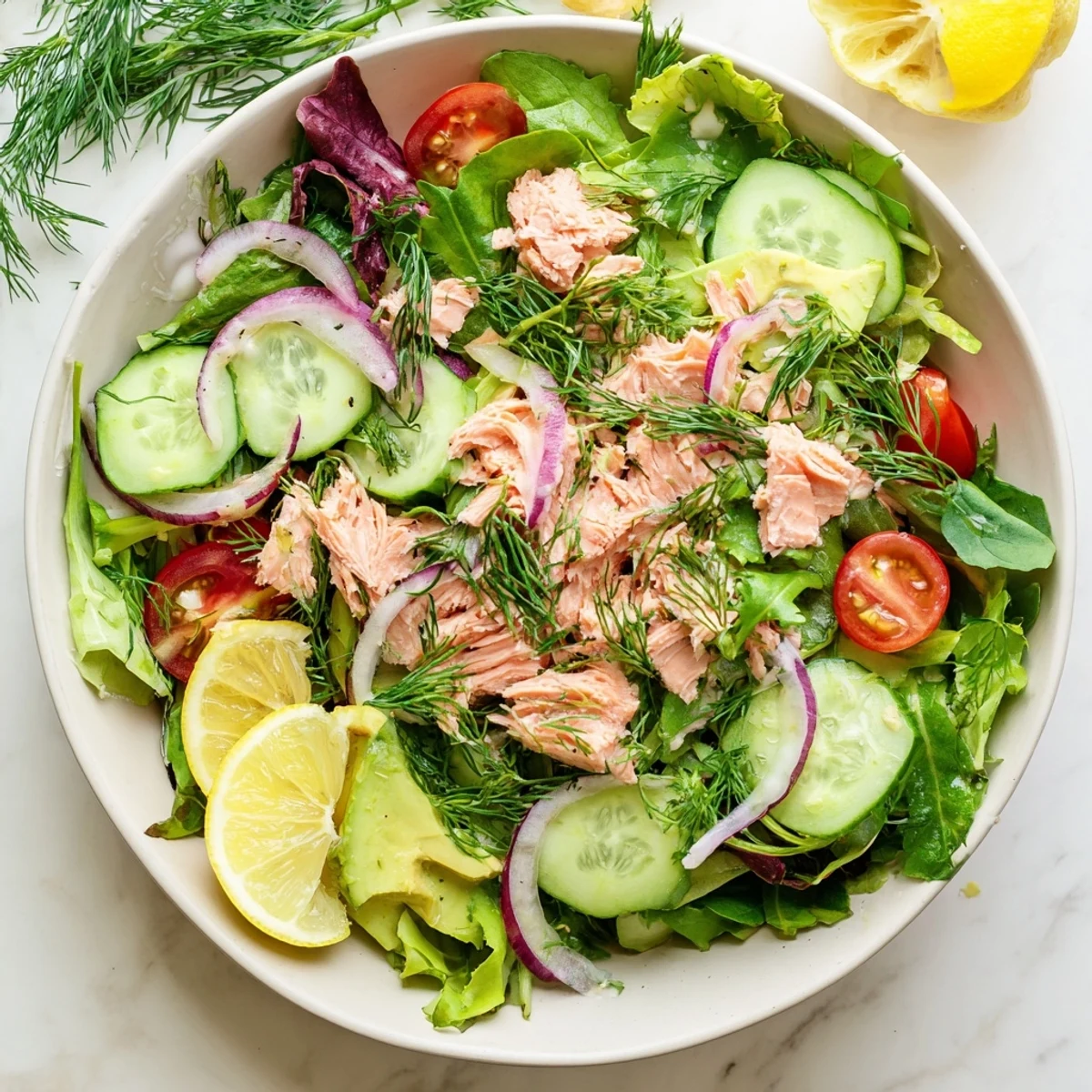 This vibrant bowl brings together pan-seared salmon fillets with a colorful medley of mixed greens, crisp cucumber, sweet cherry tomatoes, and creamy avocado. A bright lemon-honey mustard dressing ties everything together, while fresh herbs add the perfect finishing touch. Ready in just 15 minutes, this light yet satisfying dish works beautifully for lunch or dinner.